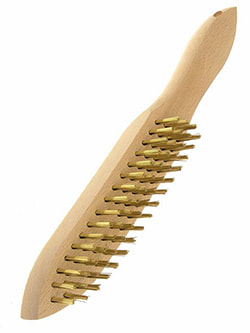 Brass bristle scubbing brush for gentle cleaning of stone.