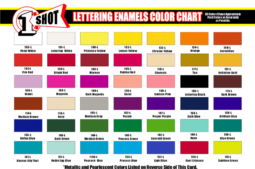Coloured One Shot Enamel Paint 236ml – Colour Chart