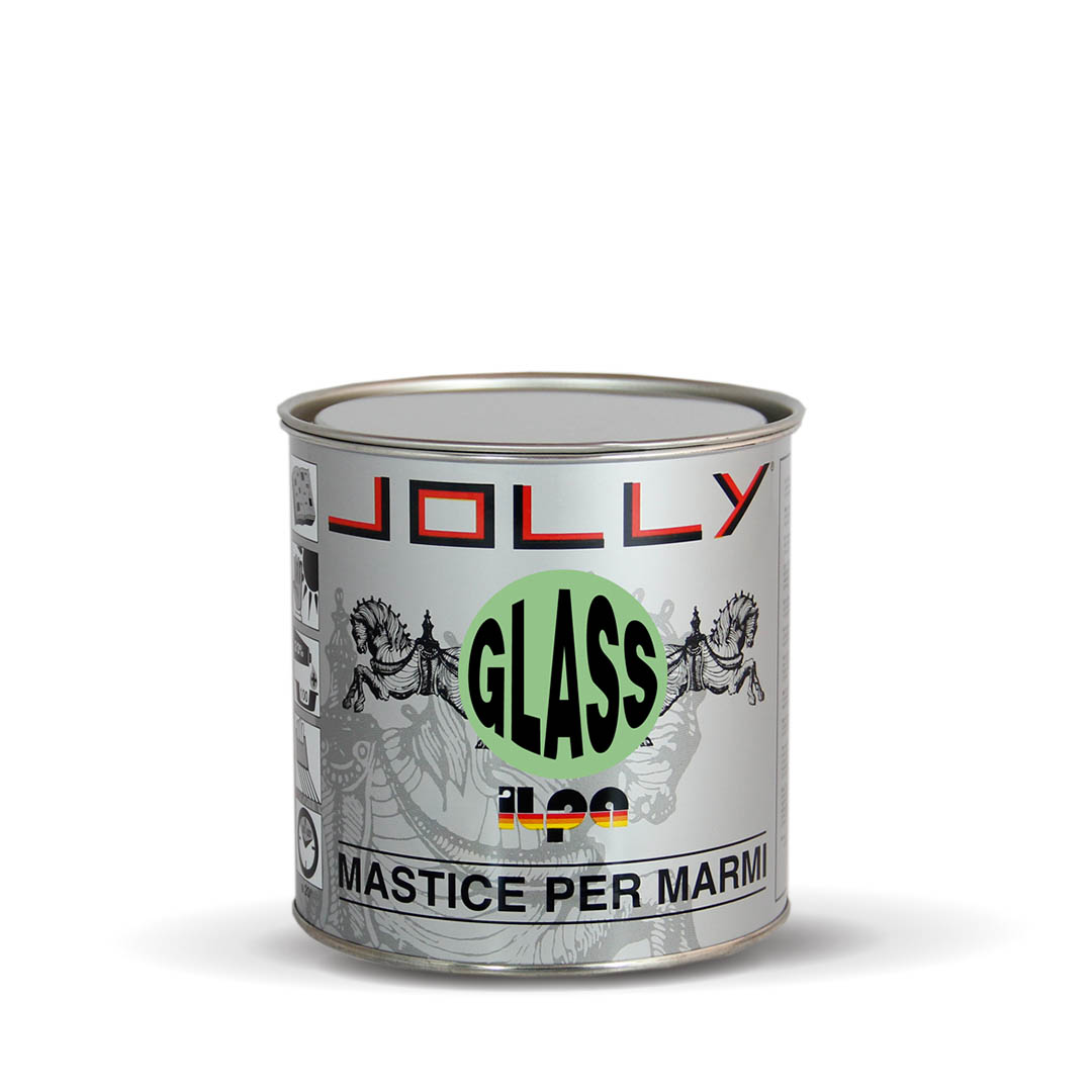 JOLLY GLASS is a mastic for marble based on synthetic resins, with a liquid and colorless hardener. Liquid version for use on Horizontal surfaces.