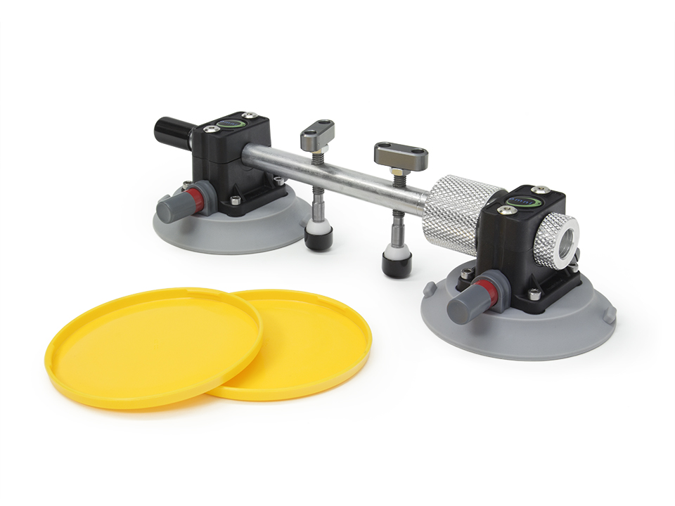The ALL-NEW Stealth Seamer™ Nano Manual joins and levels countertops to consistently create high-quality, even seams with more control and less effort than traditional methods. The product’s proprietary non-marking cups feature our FTS™ (Flexible Triple Seal) technology that locks-in vacuum and provides optimum hold even on textured and leathered materials. The Nano’s wide-open design and high-clearance driveshaft keep seams extremely accessible for epoxy application and removal—no need to waste time scraping the seam after glue has set. 5” vacuum cups allow working with smaller pieces such as backsplashes, or in tighter spaces around sinks and other cutouts. A smooth-turning knurled roller opens and closes seams with ease, and non-spinning leveling feet help fine-tune the seam without scratching surfaces. Easy to read indicators allow monitoring vacuum pressure at a glance, and cups can be re-pumped without loss of remaining pressure, unlike screw-knob or flip-lever suction cups. Use alone for short seams, or in multiples for longer seams. Sold individually; recommended for non-porous materials.