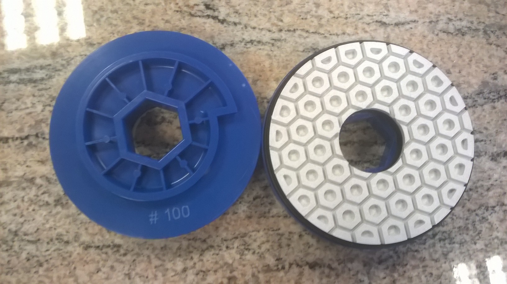Edge polishing wheel with snail lock backing and 10mm resin face . White non marking resin.