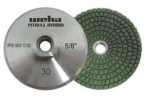 The Pitbull resin cupwheel comes on a light weight rigid aluminum back. The resin diamond looks like a traditional polishing pad. But the bond is a more durable, longer lasting bond that will outlast traditional polishing pads.