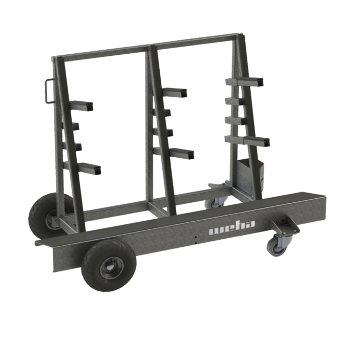 - Slab trolley “Buggy” 500 kg 140x64x125cm Durable, and nevertheless handy car for the in-pl transport of small cut slabs, kitchen plates etc. The wheels are positioned outside of the framewor and increase thus the stability. 2 swivel rollers maneouvering possible also in confined areas. For protection of the workpieces, all locations h rubber protection Tubular steel construction; Surface powder-coats.